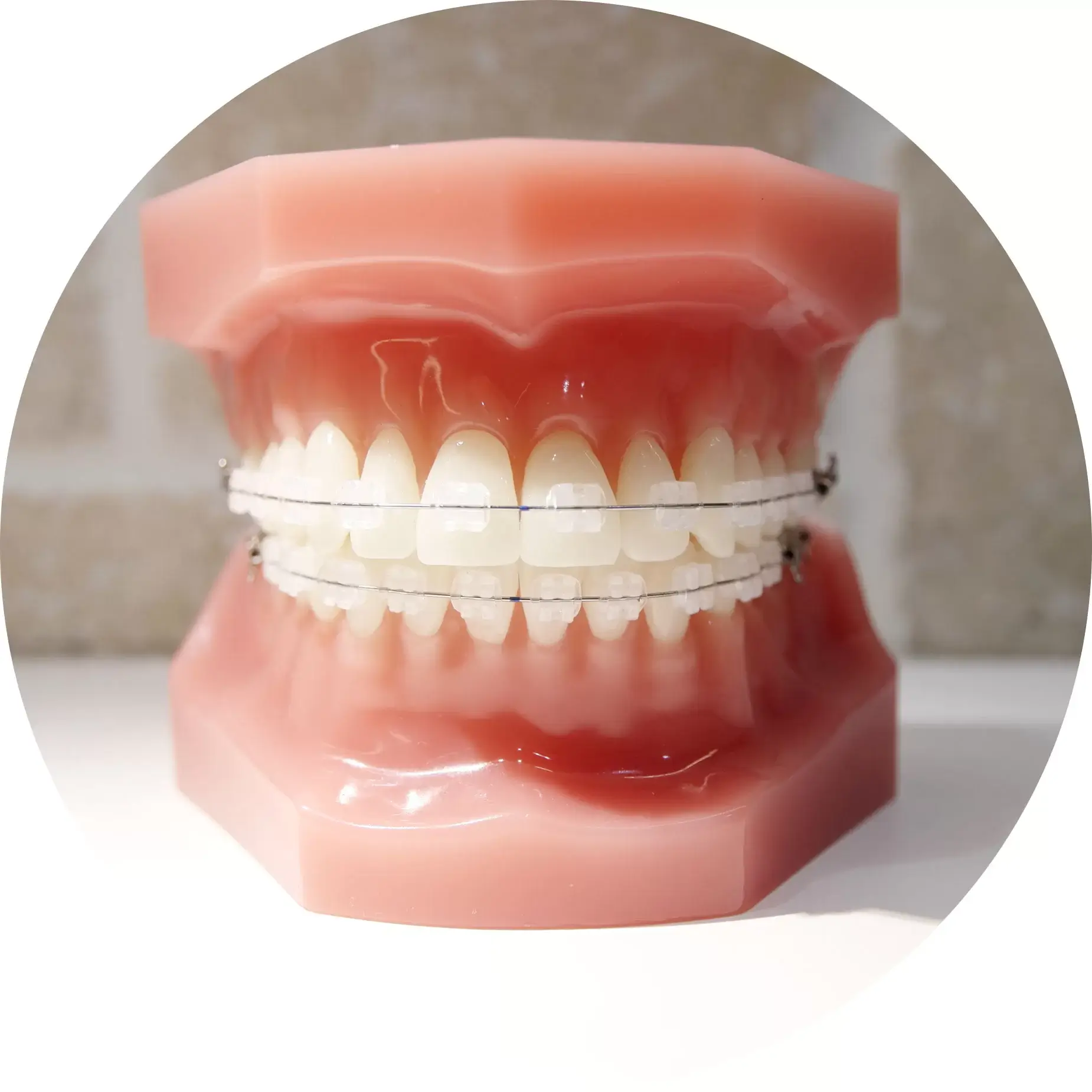 【治療内容】歯の表面のブラケットに通したワイヤーを少しずつ調節して歯を動かしていきます。
